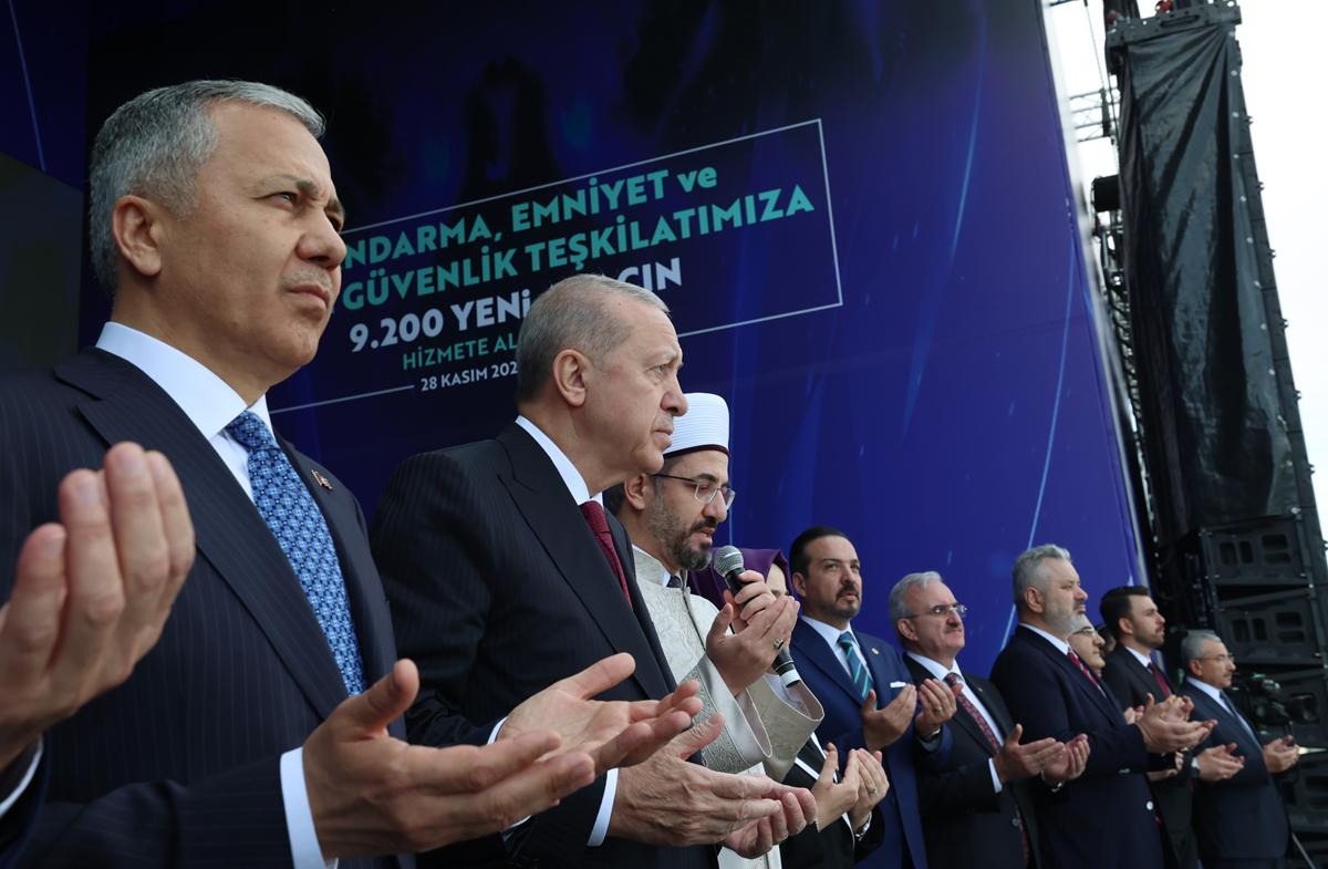 Emniyet birimlerinin personelinden, vatandaşa karşı saygıyı, tevazuyu, yapıcı yaklaşımla davranmayı elden bırakmamalarını isteyen Erdoğan, “İnsanımıza güvenlik hizmeti verirken hukukun dışına çıkmayacaksınız. Görevinizi icra ederken omuzlarınızda taşıdığınız ağır emanetin hakkını vermeye gayret edeceksiniz. Ancak suçlulara karşı ise zerre miskal tolerans göstermeyeceksiniz. Kendini devletin üstünde gören şehir eşkıyalarına, sokak çetelerine, milletin çoluk çocuğuna musallat olan zehir tüccarlarına, evlatlarımızı bize karşı kullanmaya çalışan terör örgütlerine nefes aldırmayacaksınız.” dedi.