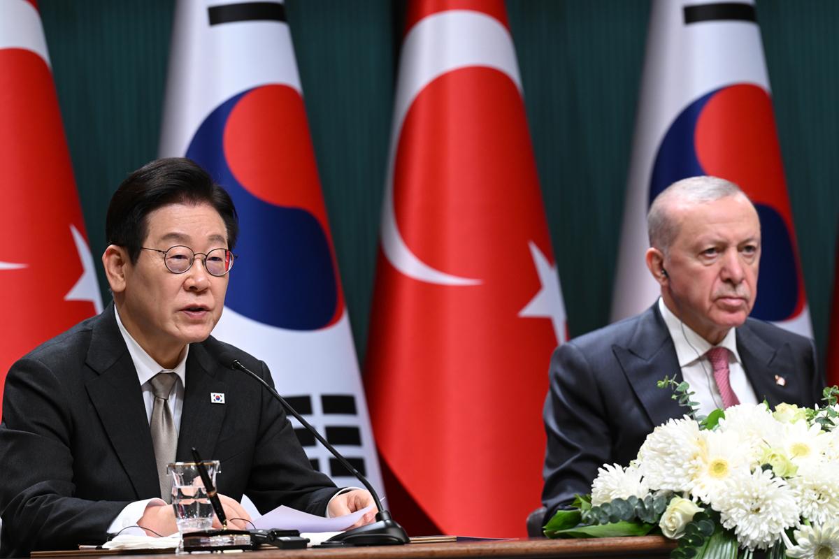 Başkan Erdoğan ve Lee, Cumhurbaşkanlığı Külliyesi’nde baş başa ve heyetler arası görüşmeler ile çeşitli anlaşmaların imza töreninin ardından ortak basın toplantısı düzenledi.