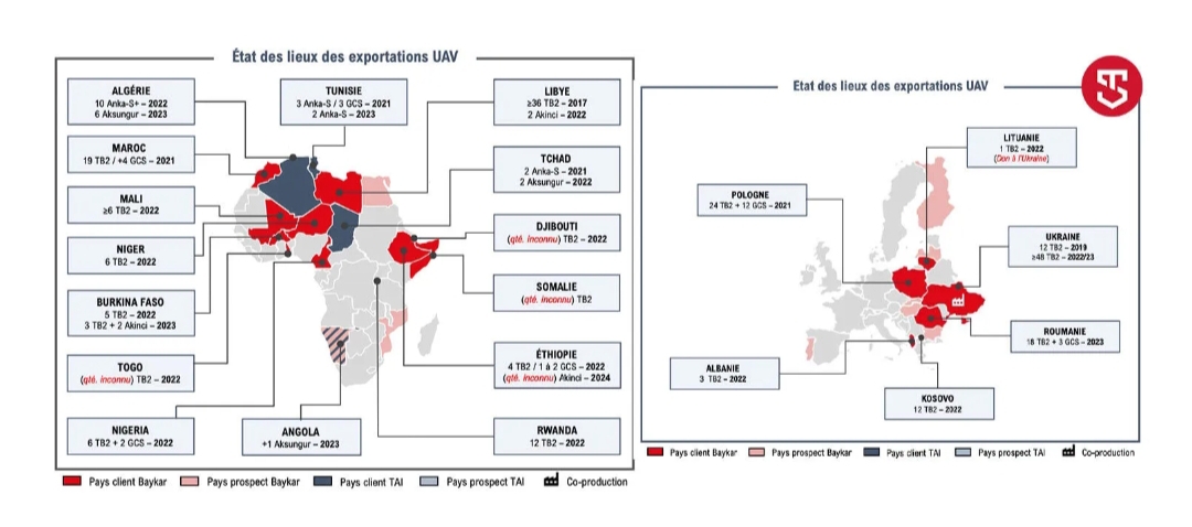Raporda ayrıca Türkiye’nin Afrika kıtasında artan etkisi üzerinde duruluyor. Türkiye’nin, Afrika ülkeleriyle yaptığı askeri iş birliği anlaşmaları ve kıtaya ihraç ettiği Bayraktar TB2, AKINCI, ANKA gibi İHA platformlarının sayısındaki artış gözler önüne seriliyor. Rapor, Fas, Tunus, Somali gibi Afrika ülkeleri başta olmak üzere toplam 130’un üzerinde İHA ihraç edildiğini belirtiyor.