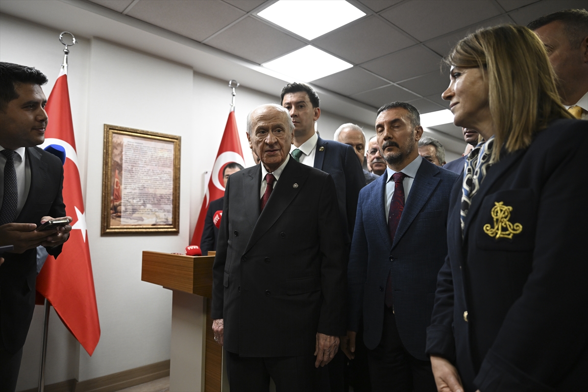 Törenin sonunda MHP Genel Başkanı Bahçeli, salondan ayrıldığı sırada basın mensuplarının sorusu üzerine, salı günü gerçekleştirilecek partisinin grup toplantısında, Türkiye’nin iç ve dış meselelerine ilişkin genel değerlendirmelerde bulunacağını söyledi.