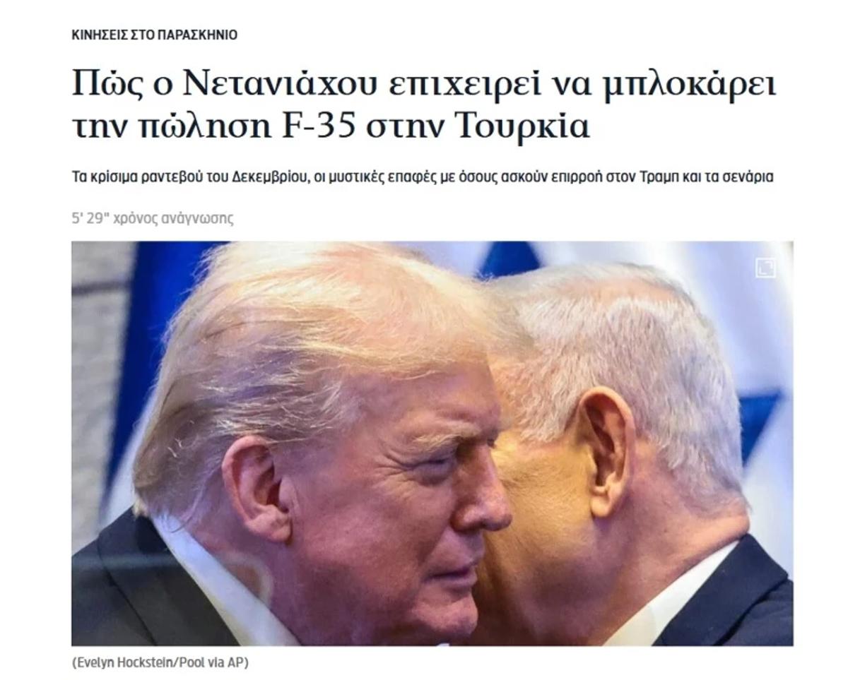 “Gazze Kasabı”nın Trump’ın hiçbir planını reddetmediğini yazan Atina basını, “Kameralar önünde ABD ve İsrail liderlikleri “uyum içinde” görünürken, kameraların arkasında Netanyahu cephesinin Türkiye’ye Amerikan yapımı F-35 savaş uçaklarının satışını engellemeye yönelik adımlar attığı görülüyor.” dedi.